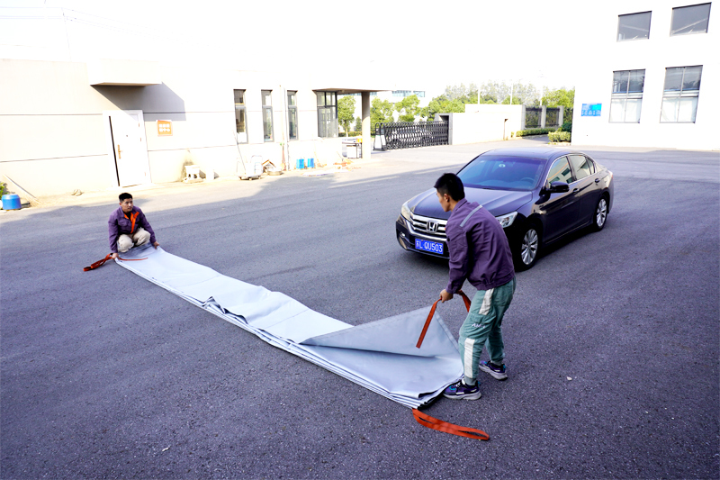 EV 자동차 화재 담요는 두 사람이 쉽게 배치할 수 있으며 보호 및 운송 편의를 위해 편리한 보관 가방에 담겨 제공됩니다.