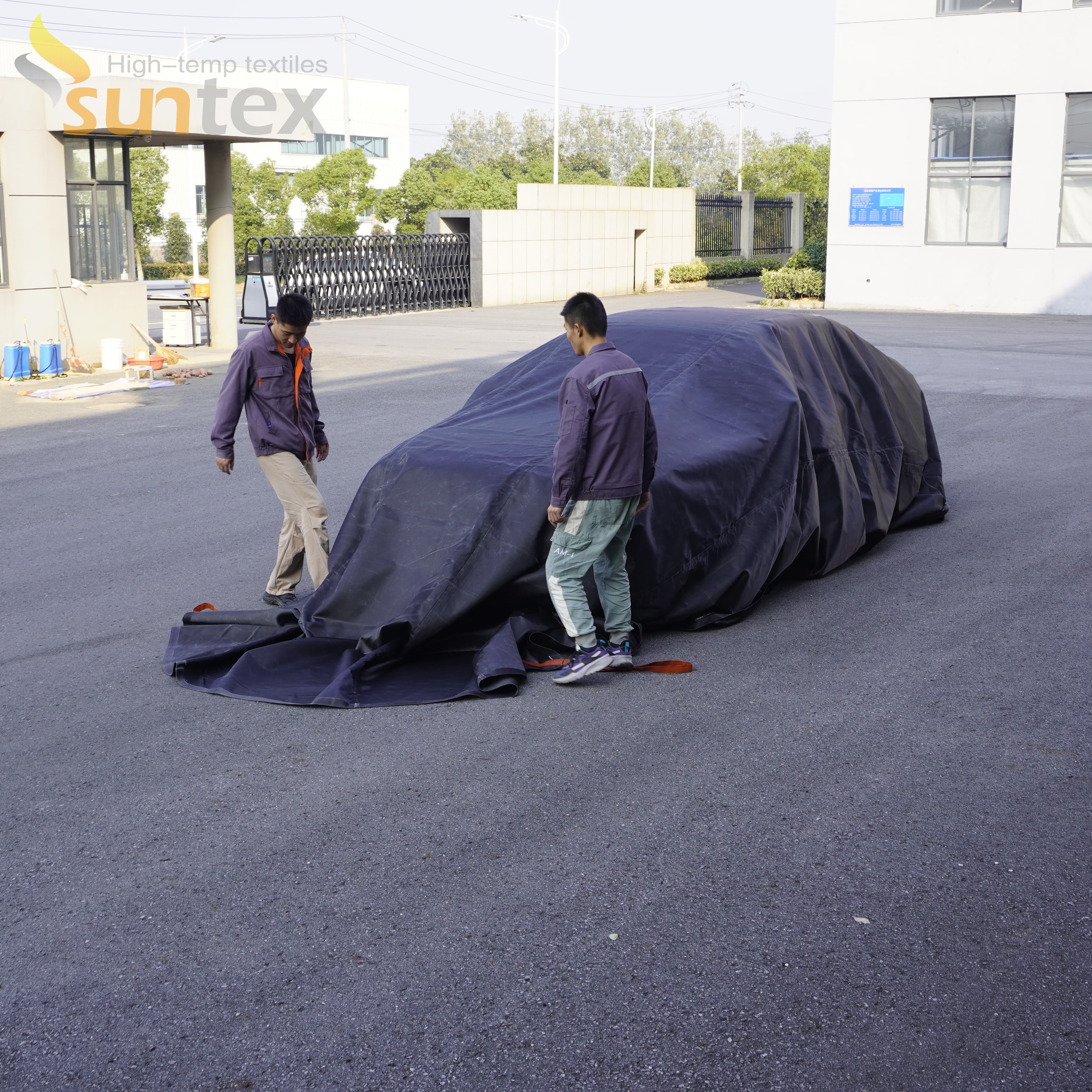 EV 자동차 화재 담요는 두 사람이 쉽게 배치할 수 있으며 보호 및 운송 편의를 위해 편리한 보관용 가방에 담겨 제공됩니다.